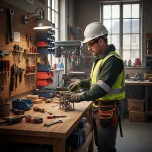 Toujours porter un équipement de protection individuelle (EPI) : casque, gants, chaussures de sécurité et lunettes.